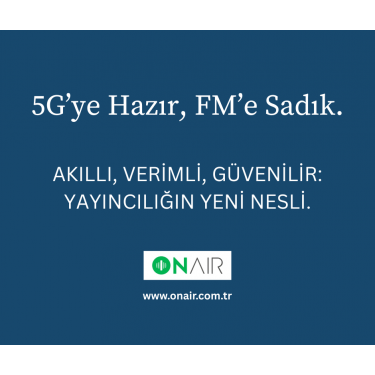 5G döneminde FM yayıncılığı yeniden güç kazanıyor. ONAIR FM vericileri; enerji verimliliği, uzaktan kontrol ve backup audio özellikleriyle kesintisiz yayın sağlıyor.